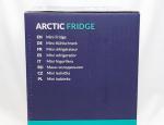 L'emballage est représentatif de la marque ainsi que du produit. En effet, on reprend les couleurs bleu/vert du site d'ARCTIC et de son packaging en général. Sur la face avant, nous avons bien sûr le nom du Fridge accompagné du nom du fabricant, un visuel en dessin représentant le Fridge termine la face. Enfin, pas tout à fait : on note l'écusson « Hot'n Cold » qui démontre que le Fridge est plus qu'un simple frigo ! Le côté droit reprend les noms que nous avions sur la face avant ; à cela s'ajoute le temps de garantie de 2 ans. Vient ensuite le listing du contenu du carton : le Fridge et deux câbles. Cette face se termine par un QR code nous menant sur le site du constructeur. Le côté gauche ne donne pas plus d'infos, juste le nom du produit en plusieurs langues.