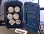 Nous avons également testé avec 6 canettes de 330 ml (en format long), et elles rentrent toutes les six : de quoi tenir la journée ! En revanche, dans ce cas, il faudra retirer le panier de la porte, sinon cela ne ferme pas.