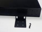 Il faut commencer par installer les équerres de montage, qui vont mettre le TEG-3182WS au standard de 19" au switch, en termes de largeur et de trous de fixation. Il faut utiliser les vis fournies, 4 de chaque côté.