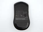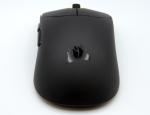 Le dessous possède deux patins lisses permettant une bonne glisse, le capteur au centre et, à côté de ce dernier, l'interrupteur de mise sous tension pour utiliser la souris en wireless. Dans le bundle fourni par Corsair, il y a 2 autres patins de glisse un peu plus grands que ceux montés sur la souris. Sur cette face cachée, il y a également les références de la souris et de nombreuses normes d'homologation. Le tout est écrit en lettres de couleur grise.