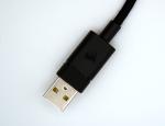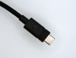 Le câble de la Sabre v2 Pro est entièrement gainé par un tissu tressé très serré. Sur ce câble est fixé un collier velcro pour bien le maintenir replié. A chaque extrémité, il y a un connecteur, soit USB-C, soit USB-A supportant le logo de la marque et un insert jaune à l'intérieur. Il mesure 185 cm de long.