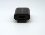 Le dernier élément qui compose cette souris est le récepteur sans-fil. Ce dernier est de forme parallélépipédique avec deux faces arrondies. Il mesure 38 x 24 x 14 mm. Sur sa face avant, il est écrit « CORSAIR » en lettres grises. Au dos, il y a un clip permettant de fixer le récepteur, par exemple, sur un bord de tapis de souris. Le port USB-C se situe sur un des petits côtés.