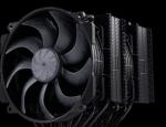 Le NH-D15 G2 chromax.black de chez Noctua est un ventirad double tour équipé d’un radiateur à 8 caloducs et de deux ventilateurs NF-A14x25r G2 140 mm PWM. Avec une hauteur de 168 mm et un poids supérieur à 1,5 kg selon la configuration, ce ventirad est juste énorme. La version chromax.black conserve le même dissipateur optimisé (ailettes à densité accrue, 8 heatpipes, base retravaillée) et les mêmes ventilateurs que la version standard, mais applique un revêtement noir à haute conductivité thermique sur l’ensemble du radiateur et des éléments métalliques afin de garantir des performances identiques à celles du modèle non peint.