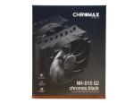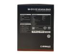 La face arrière présente un visuel du NH-D15 coiffé du nom de la série. Sur le bas de cette face, il y a un paragraphe en anglais décrivant le ventirad. La face droite contient le tableau des spécifications techniques, tandis que la face gauche propose 4 paragraphes en anglais sur les spécificités et avantages de ce NH-D15 G2 chromax.black.