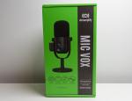 La boîte donne le ton d'entrée de jeu, nous sommes face à un produit Streamplify. La charte graphique est facilement identifiable, car il s'agit de mettre une couleur de fond avec des liserés noir. Par exemple, les périphériques vidéos sont noir et bleu. Dans notre cas, le code couleur noir et vert pour les produits audio est ici repris, le tout pour une alliance qui attire naturellement l'œil, sans virer dans le packaging criard. La face avant est tout ce qu'il y a de plus classique dans sa disposition, avec une image du microphone, et les principales caractéristiques du produit, en anglais, mondialisation oblige.