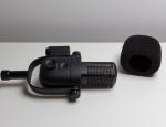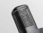En main, le microphone affiche un poids tout à fait classique pour un modèle dynamique. L’ensemble inspire confiance avec une structure bien rigide et un assemblage sérieux. Rien ne bouge, rien ne sonne creux, et l’on sent immédiatement que le produit a été pensé pour durer. Sous la mousse, on retrouve une grille métallique perforée, tandis que le corps du microphone accueille les principaux contrôles. Un potentiomètre permet d’ajuster le gain, accompagné d’un bouton mute bien intégré, ainsi que de plusieurs indicateurs lumineux pour suivre l’état du microphone. L’ensemble est clair, lisible et facilement accessible.