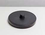 Le système de maintien repose sur un arceau robuste avec pas de vis standard, permettant une installation aussi bien sur le pied fourni que sur un bras articulé. Le socle circulaire, compact mais suffisamment stable, assure un bon maintien sur le bureau sans encombrer l’espace.