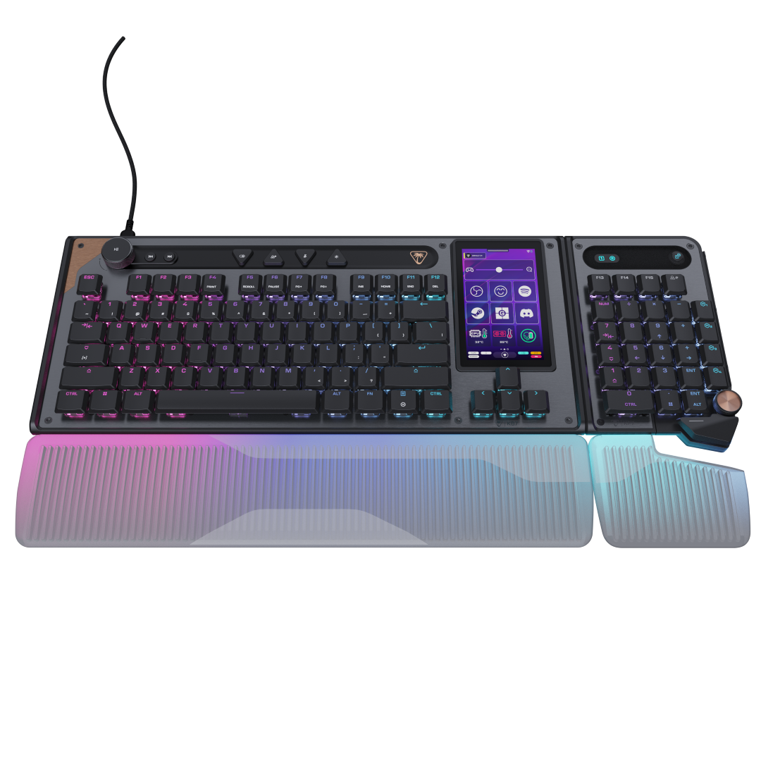 Glorious Gaming est beaucoup connue pour ses souris, mais la marque américaine propose également des claviers depuis quelques années. Le GMBK 75% s'inscrit dans une gamme d'entrée de gamme accessible, avec un format compact qui commence à bien s'imposer dans le monde du gaming comme du bureautique. Le 75% conserve les touches de fonction et les flèches directionnelles tout en gagnant de la place sur le bureau. Ici, pas de switches mécaniques : Glorious opte pour une membrane compatible MX, avec éclairage RGB multi-zones, molette de volume intégrée et compatibilité logicielle via Glorious CORE.