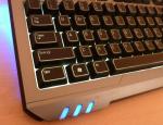 Comme on peut le voir sur la photo, le Marauder n'est pas un clavier 105 touches classique, mais un clavier compact où le pavé numérique et la zone des flèches et des touches de défilement ont été fusionnés. Le constructeur allemand ROCCAT avait suivi exactement la même piste pour réduire la largeur de l'ensemble de son Arvo. La touche verrouillage numérique est utilisée pour passer le pavé numérique soit en mode numérique, soit en mode flèches.