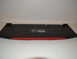 Le rétro-éclairage quant à lui couvre toutes les touches, y compris celles des macros et des fonctions, placées sur les côtés gauche et droit. Les 10 touches programmables, 5 de chaque côté, sont en effet réparties dans les parties laquées noires. Les touches de fonctions sont toutes alignées et sont plutôt de petite taille et assez éloignées les unes des autres. Au-dessus du pavé numérique et de la zone la zone insert/suppr. on retrouve des touches multimédias : précédent/suivant, lecture/pause, volume +/-, niveau lumineux et enfin la touche permettant de changer le rétroéclairage à la volée. À noter qu'il y a très peu d'espace entre les différents groupes de touches du clavier (et notamment les touches Impr. écran/arrêt défil/pause sont collées d'un côté à la touche F12 et de l'autre à la première touche multimédia).
