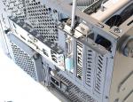 Mettons notre MSI GTX 560 Ti de test dans ce boîtier.Il faudra d'abord retirer le petit cache clipsé, puis défaire les deux vis à main qui maintiennent les grilles à l'arrière. Il ne restera plus qu'à insérer la carte et refaire les premières étapes en sens inverse. Nous regrettons l'absence de clips pour le maintien des cartes annexes, là où la concurrence les utilise de plus en plus, comme les marques Lian Li ou encore HéliosCase.