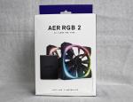 C'est donc dans un milieu minimaliste qu'on retrouve le grand titre « AER RGB 2 » sur la face avant, qui sont les ventilateurs RGB du fabricant, très appréciés des amoureux de la couleur. Cette paire de ventilateurs est donc livrée avec le contrôleur HUE2+, évolution du HUE premier du nom qui devrait promettre – on l'espère – quelques fonctionnalités supplémentaires. La paire est ici très intéressante et va permettre d'obtenir un système d'éclairage homogène et très personnalisable.