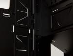 Le boîtier est équipé de trois passes-câbles en bordure de la zone de la carte-mère et d'un autre sur le bas du cache-alimentation. Ces derniers sont en caoutchouc souple afin de passer facilement le câblage. Le rebord est plus rigide et permet de les maintenir en place sur le boîtier. La finition de l'intérieur de ce SL600M est très bonne ce qui fournit un réel sentiment de qualité.