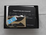 A l'ouverture, nous voyons la souris maintenue sur un socle en carton noir mais, chose rare, également des informations relatives à la garantie inscrites sur la face interne de l'emballage. A la sortie du socle de maintien de la souris, nous constatons que l'ensemble du bundle se situe avec la câble, sous ce socle. Il se constitue d'un guide démarrage rapide, d'un flyer avec l'adresse du support HyperX et d'une pochette renfermant un jeu de patins de glisse de rechange et d'adhésifs à placer sur la souris pour améliorer sa préhension.