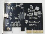 La carte est de petite taille, ce qui lui permettra, comme on l'a vu, de s'installer dans des environnements low profile. Sur l'équerre, au centre, on trouve l'unique port de la carte, sans surprise au format USB-C. Au centre, on voit le contrôleur. Il s'agit d'un ASMedia ASM3242. La consultation de la fiche technique de ce dernier nous confirme ce que l'on sait déjà : grâce à ce composant d'un centimètre de côté, la carte va bel et bien pouvoir proposer de la Gen 2x2.De manière assez logique, l'ECU06 utilise 4 lignes de PCI-E, comme le SSD PCI-E qu'on va connecter par l’intermédiaire du boitier. Ce qui veut dire que sur bien des cartes mères récentes, il faudra lui attribuer un port PCI-E 16x. C'est un point à prendre en compte lors de l'achat, notamment.