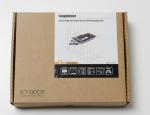 Le MB111VP-B est livré dans une petite boite cartonnée et marron toute simple, avec, sur une large étiquette couleur, une petite photo du produit. Au-dessus, on a la gamme d'appartenance, qui est ToughArmor. Chez ce constructeur, cela implique une structure entièrement ou en grande partie métallique, pour plus de solidité. La référence précise du produit (MB111VP-B) est indiquée, et vu la complexité de la nomenclature Icy Dock, c'est un rappel bien nécessaire.