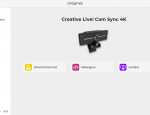 Sur le site du fabricant, sur la page de notre produit, on trouve aussi la présence d’un logiciel : Creative pour Windows (v1.14.00.00) qui pèse un 50,86 Mo. Une fois installé, le programme fait le tour des équipements compatibles et détecte tout de suite notre Webcam, on arrive ainsi sur une petite page d’accueil et qui nous propose 3 onglets de paramétrages.