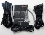 Nous sommes chez be quiet!, le noir prédomine donc. Sur la face avant, nous retrouvons le nom du fabricant en haut avec ses couleurs blanches et orange bien mis en évidence avec juste en dessous la photo de l'alimentation en question. Le nom de celle-ci accompagné de sa puissance, soit 1000 W dans notre cas. En haut à gauche, la certification indique 80+ Platinum, soit le 2 eme meilleur niveau de rendement disponible à ce jour.