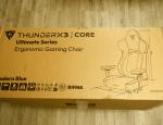 Comme on est plus dans le domaine du mobilier de bureau que dans celui du composant informatique, le carton du ThunderX3 se révèle être particulièrement imposant. En effet, le « petit » paquet de 36 kg mesure un peu moins de 96 cm de long par 74 cm de large et 42 cm d'épaisseur, comme l'indiquent les mentions présentes sur la tranche du carton. Du fait de son encombrement, il n'est donc pas très facile de le déplacer seul. C'est un point à prendre en compte lors de l'achat et de la livraison ou pour le transporter.Sur l'emballage en lui-même, on ne retrouve que peu d'informations. On a bien évidemment le nom de la marque «ThunderX3», le modèle : Core, et la mention Modern Blue, qui correspond à la finition et à la couleur du siège. Un visuel en monochrome permet de se donner une petite idée du résultat, mais il n'y a aucune caractéristique précise de visible. Dans la colonne de droite du présent article, vous retrouvez à ce sujet la fiche technique détaillée. A noter que cette référence de fauteuil existe également en noir et en rouge.