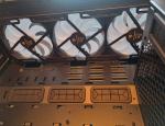 Côté stockage, on retrouve un espace pouvant accueillir jusqu’à 3 disques 3,5” ainsi que 2 emplacements pour SSD 2,5” répartis à l’arrière du plateau de la carte mère.