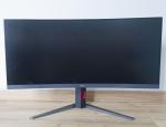 La dalle VA de 34 pouces affiche quant à elle une définition Quad HD de 3440 x 1 440 px avec un ratio 21:9, le tout avec un rayon de courbure de 1500 mm, ce qui renforcera sans nul doute l'immersion. La connectique est regroupée à l'arrière et comprend deux entrées DisplayPort 1.2, deux entrées HDMI 1.4 et une sortie audio.