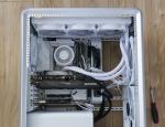 Une fois la configuration complète assemblée, on profite d’un espace intérieur remarquablement aéré. Le large volume du châssis permet d’éviter toute obstruction majeure, et les ventilateurs latéraux contribuent à maintenir un flux d’air transversal efficace. Le montage dans le MasterFrame 500 Mesh se révèle particulièrement agréable grâce à son large espace intérieur et à l’accès très dégagé aux différents éléments.