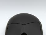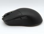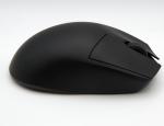 En dehors des patins en PTFE sous la souris, la Dark Perk Ergo est intégralement noire. Le nom de la marque est inscrit de façon extrêmement discrète sur le haut du clic droit. Cette version Ergo de la Dark Perk présente une zone pour le pouce légèrement bombée. C'est ce qui fait la différence avec la Sym.