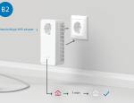 Pour mettre en œuvre ce kit multiroom Magic 2 Next, il suffit de suivre les instructions détaillées dans le guide d'installation. Dans un premier temps, il faut brancher les deux adaptateurs Devolo Magic WiFi dans une prise murale libre et attendre que la LED avec la maison clignote blanc rapidement. Dans les 2 minutes il faut brancher l’adaptateur DEVOLO Magic LAN dans une prise de courant et le connecter au routeur à l‘aide du câble Ethernet fourni.