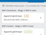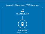 Ayant un smartphone sur base Android, nous avons logiquement téléchargé la version de Home Network disponible sur le Google Play Store.A l'ouverture de l'application, nous arrivons sur un écran avec l'adaptateur LAN connecté à notre box au centre, cet état est matérialisé par un logo Routeur . Il y a l'adresse IP qui est attribuée à ce bloc LAN. En dessous, de chaque côté de l'écran, il y a les 2 autres adaptateurs et leurs noms. Nous utilisons l'application Home Network depuis le test du kit Mesh et nous retrouvons cette ancienne configuration sur l'écran d'accueil. L'application garde en mémoire toutes nos configurations.