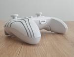Visuellement, la Afterglow Wave opte pour un look moderne et épuré avec une coque blanche mate opaque. Contrairement à certains modèles très chargés en illustrations, elle mise sur la sobriété au repos. La particularité de son design réside dans les motifs en forme de « vague » qui parcourent les deux côtés des poignées, symbole des Afterglow Wave : une fois la manette allumée, ces zones s'illuminent pour laisser passer un éclairage RGB entièrement personnalisable.Les sticks