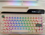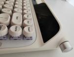 Le Glyph adopte un layout 75% compact à 83 touches, avec touches de navigation, F-row et intégration parfaite de l’écran, du bouton rotatif et du levier, le tout dans un châssis bien pensé par rapport à un TKL classique. C’est un compromis intéressant pour ceux qui veulent de la compacité sans renoncer aux fonctions essentielles, tout en ajoutant une touche rétro distinctive.Les keycaps fournis sont en PBT épais, avec un marquage dye-sub non translucide : l’éclairage RGB passe donc autour des touches, et non au travers des légendes. Les touches rondes façon machine à écrire et les différents coloris proposés permettent d’adapter le style du clavier au setup, avec une identité visuelle très forte. Entre l'éclairage sous les touches et la lumière de l'écran TFT, les sessions d'écriture nocturne ne fatiguent pas les yeux, et il n'est pas nécessaire de revenir plusieurs fois sur les touches.