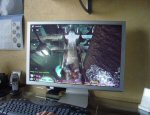 Outre ces images, voici une vidéo de 31 mo à télécharger ici ! D'une durée de 2 minutes 47, elle montre l'écran 23 pouces en action sous UT2004. Le moniteur est filmé par un camescope, et ça rend vraiment très bien. La bande son est superbe, puisque les sons du jeux ont été remplacés par une chanson de Linkin Park, Papercut.